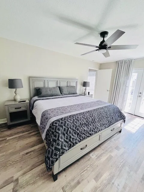 • Bedroom 1: King bed with attached tub/shower combo